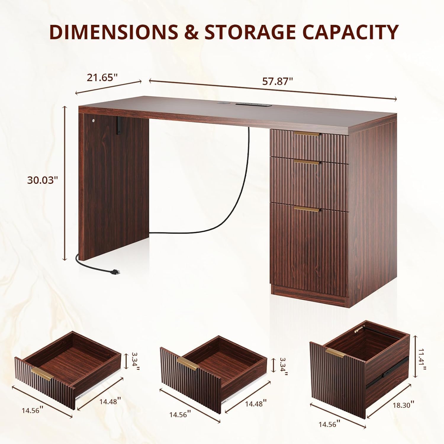 Spacious 58-Inch Work Surface: Measuring 58″L × 22″W × 30″H, wood office desk offers plenty of room for your computer, documents, and office supplies. Its generous layout helps you stay productive while keeping your workspace clean and organized.