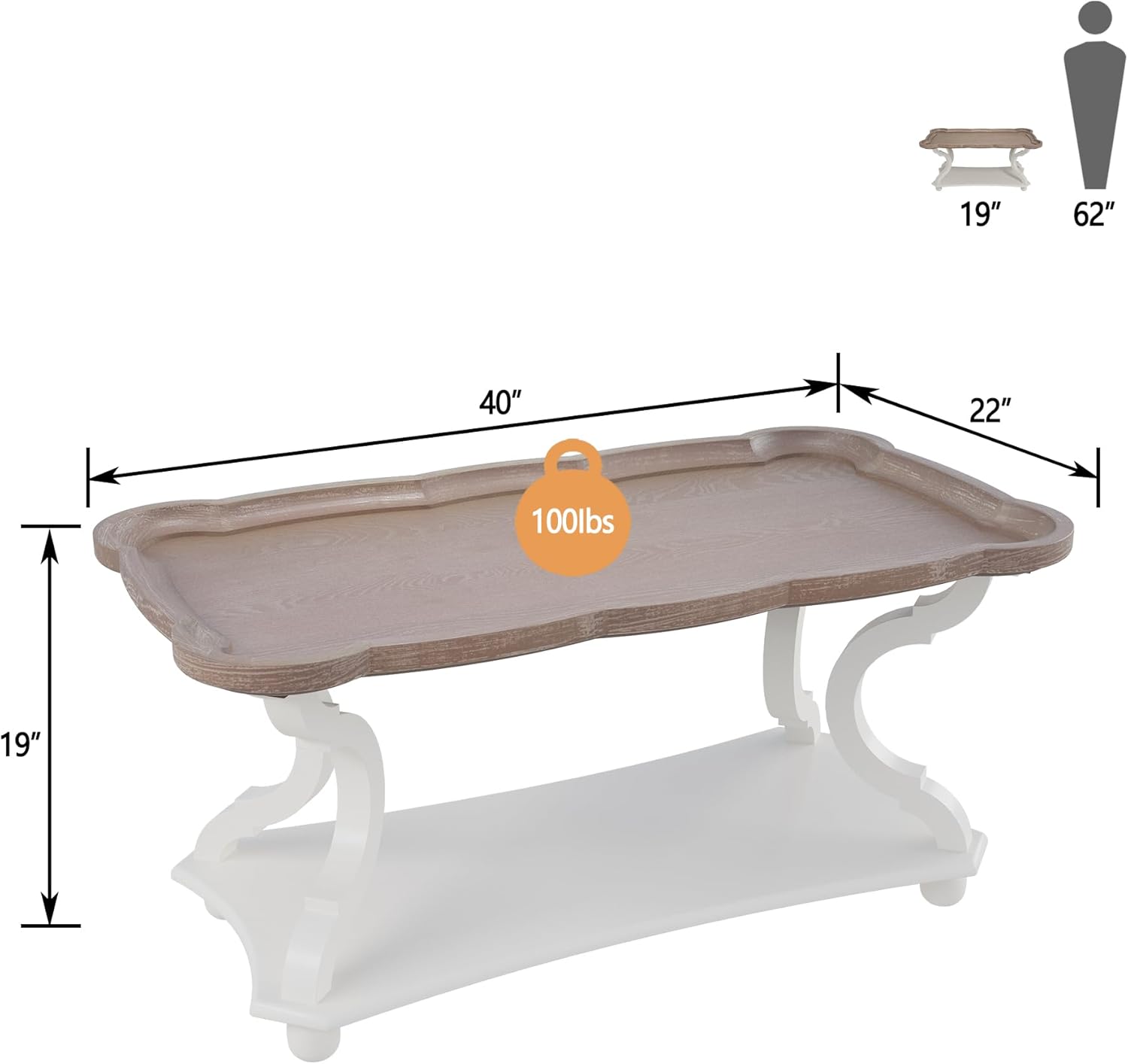 【Farmhouse Coffee Table】Bring your room a touch of elegance and romantic French country charm with this vintage white coffee table. The coffee table features a natural wood tray-style finish that perfectly complements its sturdy base, making it ideal for any decor style from rustic to traditional.