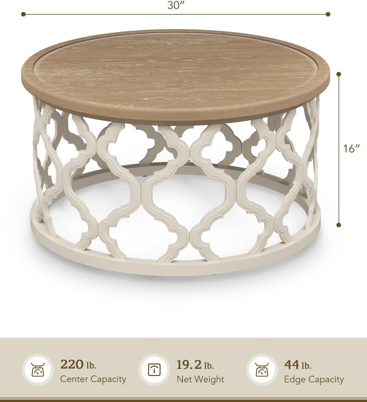 Modern Farmhouse Decor: ‘s 30-inch round coffee table blends French country charm with modern design and functionality, easily complementing any home decor styles in both living rooms and dining rooms