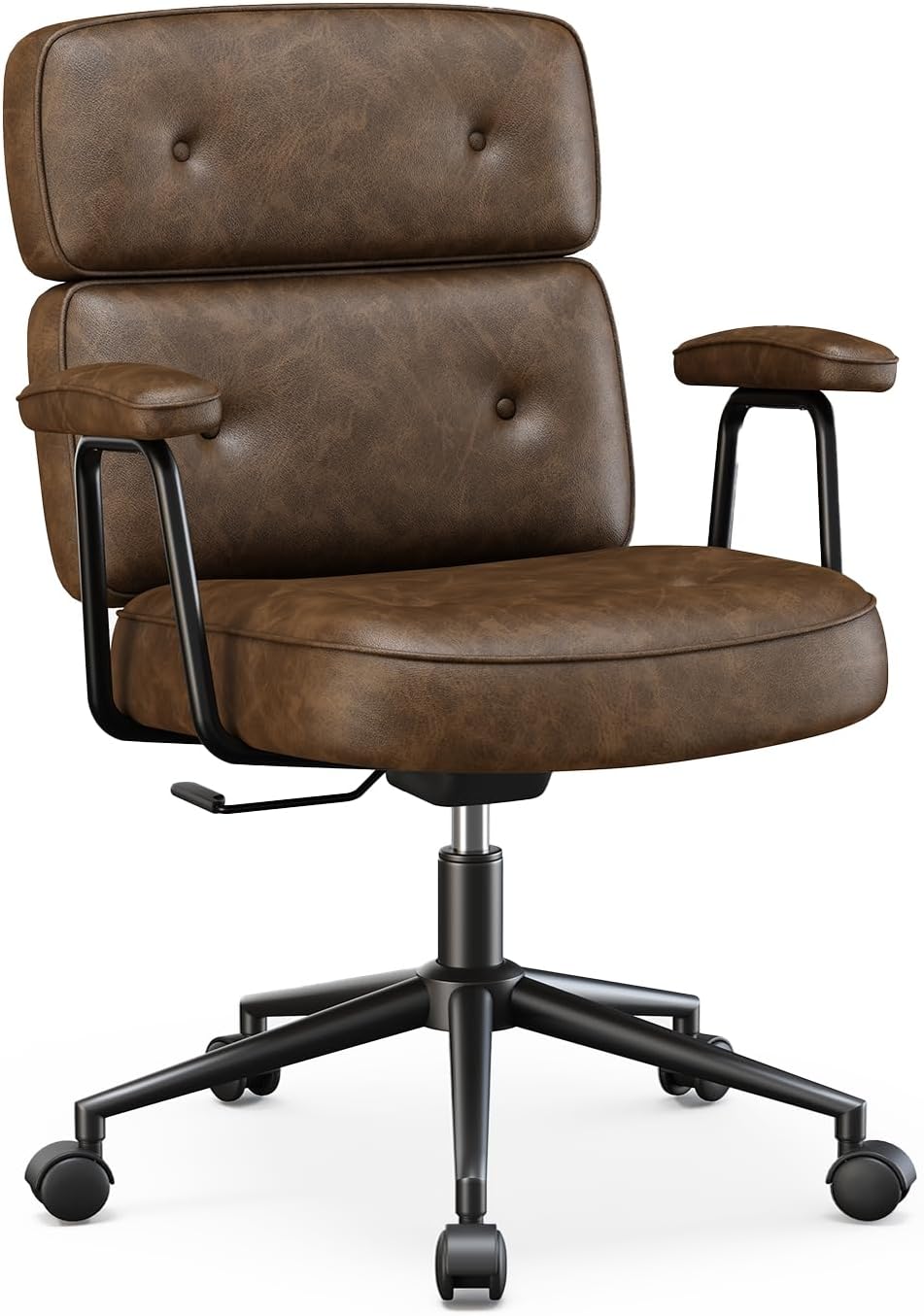 Ergonomic Home Office Desk Chair, PU Leather Computer Chair with Lumbar Support Adjustable Height Rolling Swivel Executive Task Armrests Chair, Modern Brown