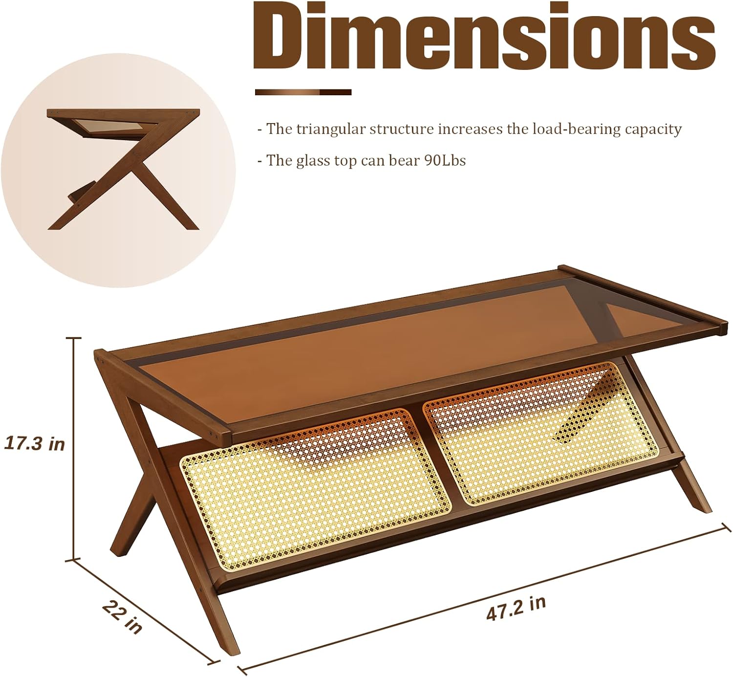 HIGH QUALITY MATERIALS: This coffee table is made of 0.6-inch toughened glass and high-quality, eco-friendly bamboo. High-quality materials bring you a real safety and durable coffee table. This modern table is 22-inch height, 17.2-inch length, and 47.2-inch wide.