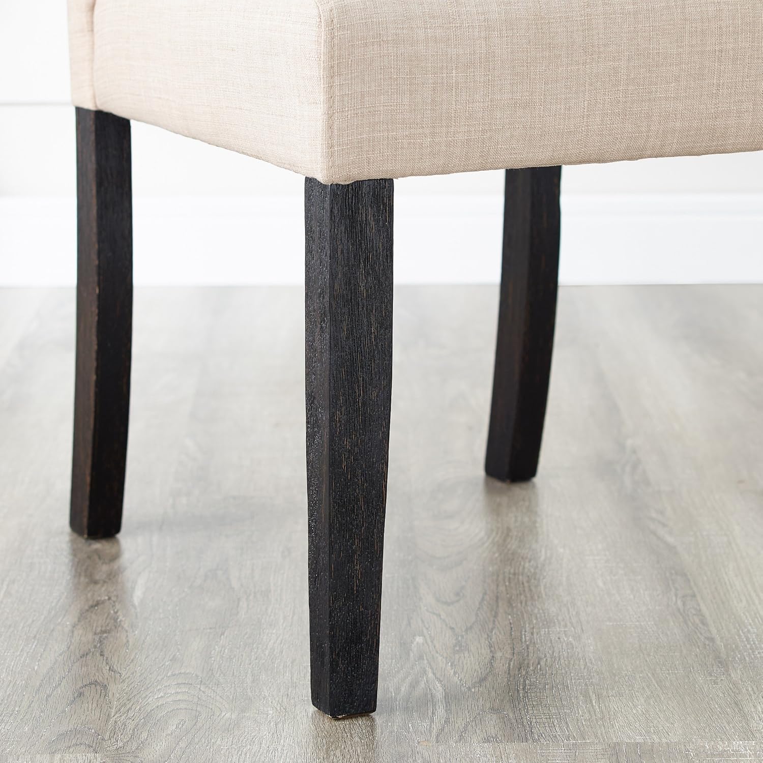 • Button tufted for a tailored look, the Solid Wood Tufted Dining Chair upgrades your kitchen or dining room. This set includes two ‘s style dining chairs. The wood frames are armless design and finished in espresso for a contrast to the polyester fabric upholstery.